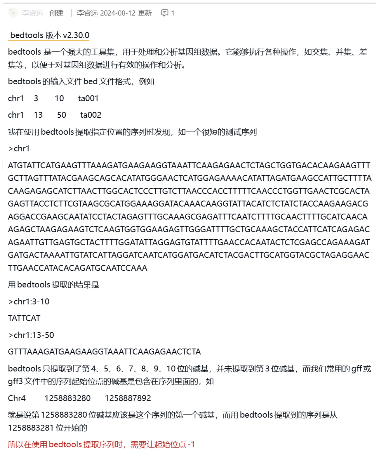 - Bedtools提取序列时,需要让起始位点-1(结论来自睿远论坛)