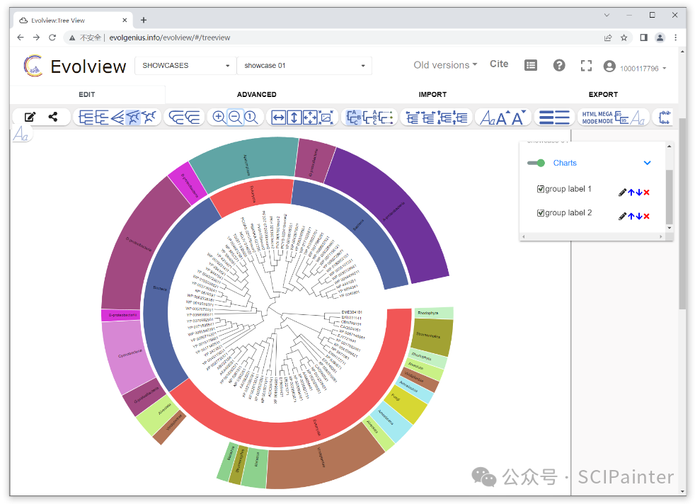 功能:功能极其强大的进化树可视化与注释工具,支持添加多种注释层(形状、颜色、柱状图等)。