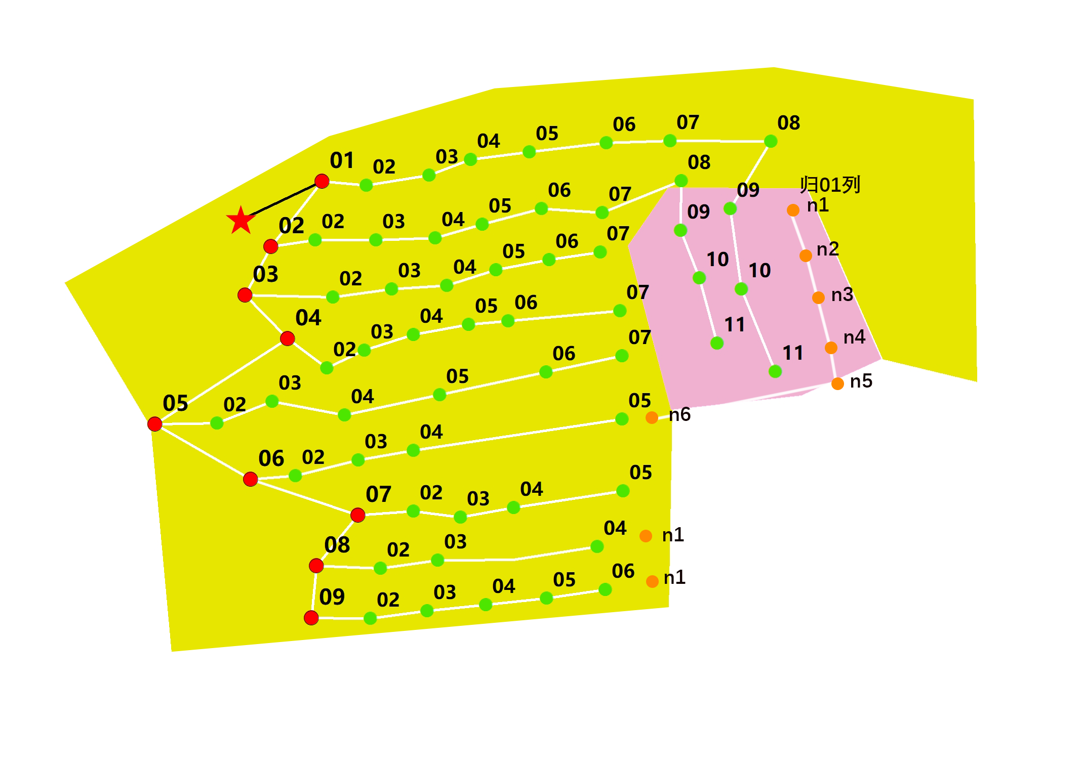 黄1区 由于当初底色设计,新补树为橙色,标号也是yellow-n-1-01-01