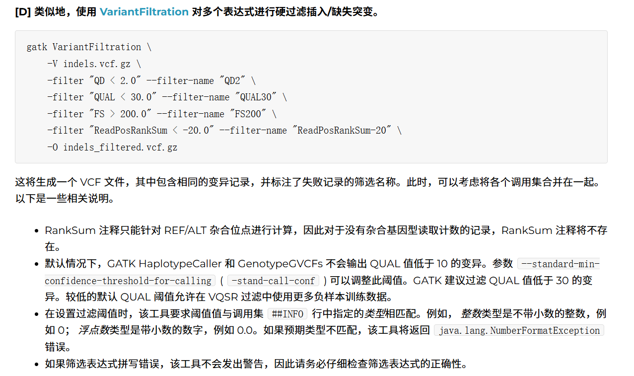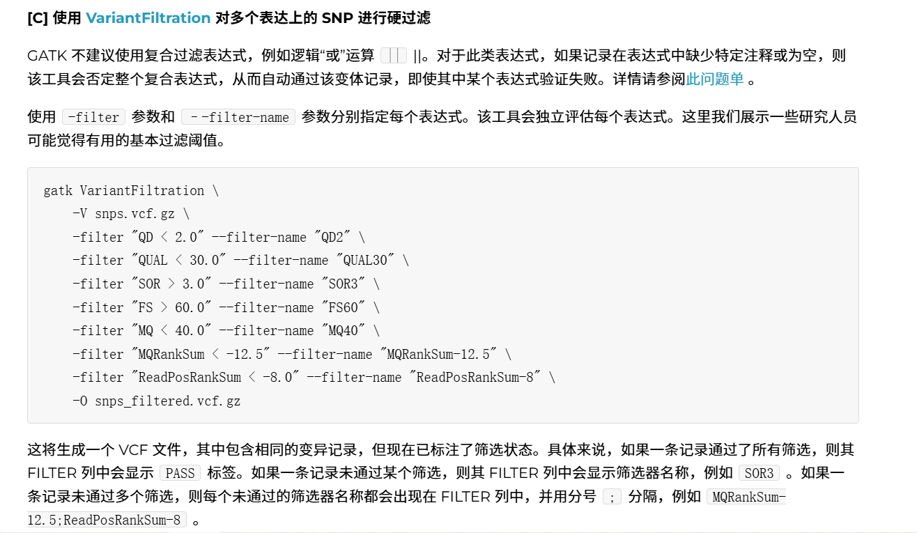 gatk官网在2025年更新了Hard Filter的标准,选择最新的标准进行筛选: