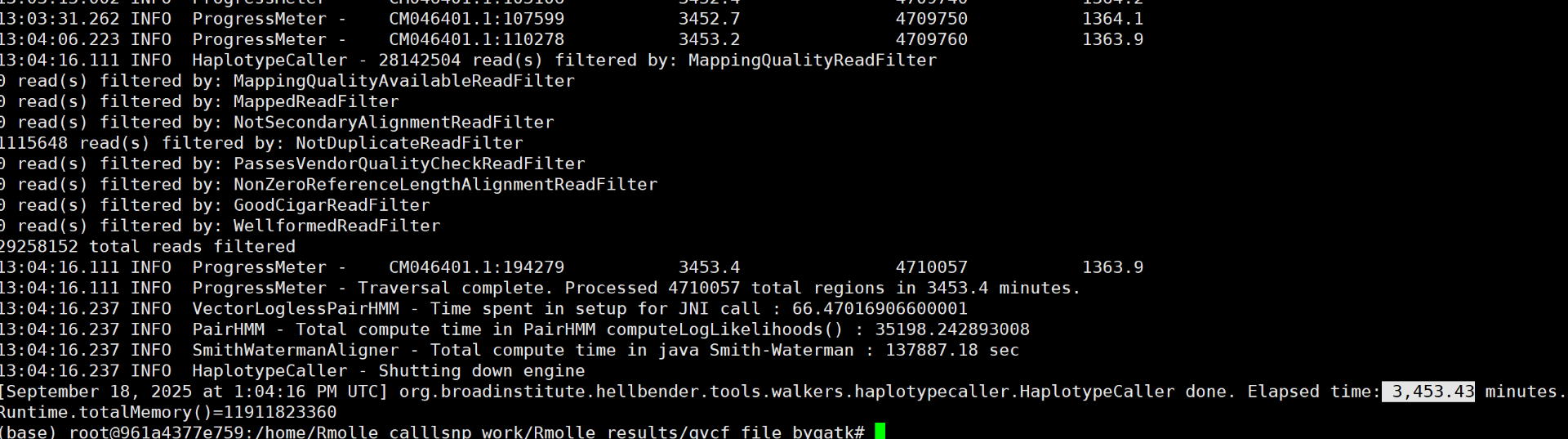 gatk --java-options "-Xmx10g -XX:ParallelGCThreads=4" HaplotypeCaller -R genome.fasta -I sample1.pe.sort.markdup.bam -ERC GVCF -O sample1.g.vcf.gz